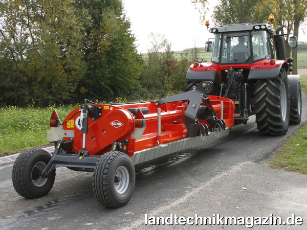 Die neuen Kuhn Mulcher der Baureihe BC 1000 werden in der 3-Punkt-Hydraulik gefahren und verfügen nach Herstellerangaben über einen für leistungsstarke Traktoren ausgelegten, robusten Anbaubock. Die Modelle BC 4000 und BC 4500 rüstet Kuhn für die Straßenfahrt mit einer Langfahrvorrichtung inklusive hydraulisch bedientem Transportfahrwerk aus.