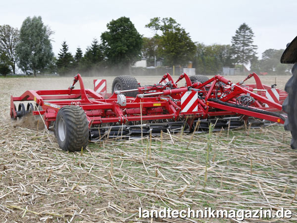 Für die Kurzscheibeneggen Horsch Joker 5 bis 8 RT erweitert das Unternehmen den Ausstattungskatalog um eine Messerwalze, die vor den Scheiben montiert wird. Die 280-mm-Walze verfügt über sechs leicht schräg angeordnete Messer und entspricht in ihrer Breite der Arbeitsbreite. Horsch empfiehlt das neue Vorwerkzeug vor allem für Raps- und Sonnenblumenstoppeln, die durch die Messerwalze zerkleinert und gebrochen werden, um dann von den Scheiben eingearbeitet zu werden. Gerade Raps könne so sehr flach bearbeitet werden, was den Ausfall-Raps nicht vergrabe und so zum Auflaufen stimuliere.