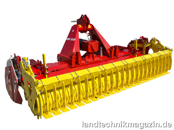 Für größere Traktoren stellt Pöttinger die LION 103 Linie vor, die in der 3-m-Ausführung für bis zu 180 PS ausgelegt wurde und in der 4-m-Version für bis zu 200 PS. In dieser Linie kommt das bereits aus der LION 302 Baureihe bekannte Wechselradgetriebe zum Einsatz, das eine hohe Kreiseldrehzahlvariabilität bietet. Durch den Wechsel der Stirnräder können die Kreiseldrehzahlen bei einer Gelenkwellendrehzahl von 540 U/min zwischen 153 und 209 U/min variiert werden, bei 1000 U/min zwischen 283 und 387 U/min. Ein Zapfwellendurchtrieb ist beim Wechselradgetriebe optional erhältlich. Bei der 4-m-Version wurden seitliche Bockstreben für eine sichere Kombination mit Aufbau-Sämaschinen (Pöttinger VITASEM oder AEROSEM) angebracht. Für diese Reihe sind nach Firmenangaben die gleichen Ausrüstungsmöglichkeiten wie für die LION 102 Serie erhältlich, womit auch eine große Auswahl an Nachläufern zur Verfügung steht.