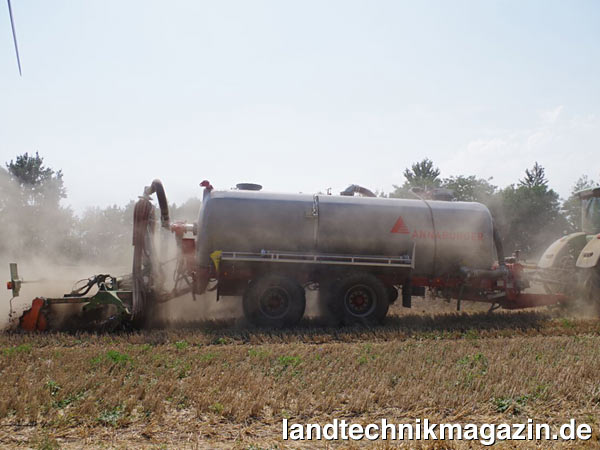 Wie bei Annaburger üblich, wird der Tank auch beim neuen ProfiTanker Plus HTS 24.28 aus GfK (Glasfaser verstärkter Kunststoff) im bewährten Wickelverfahren hergestellt. Anders als bisher besitzt der Behälter jedoch keine zylindrische Form, sondern einen herzförmigen Querschnitt. Lokale Verstärkungen des GfK-Laminates und die Einbeziehung der ebenfalls aus GfK gefertigten Schwallwände in die Tragwerksstruktur sorgen laut Annaburger für eine hohe Stabilität des dennoch leichten Tankes, der so im neuen ProfiTanker Plus HTS 24.28 eine tragende Funktion übernehmen kann. Entsprechend leichter konnte der Fahrzeugrahmen mit offen gekannteten Längsprofilen gestaltet werden. Lokale Verstärkungen verhelfen auch dem Rahmen zur nötigen Stabilität und sorgen zudem für eine optimale Krafteinleitung in den Tank. Insgesamt konnte Annaburger durch diese neuartige Konstruktion nach eigenen Angaben 1.000 kg Gewicht einsparen. Das zulässige Gesamtgewicht beziffert Annaburger für den neuen ProfiTanker Plus HTS 24.28 übrigens mit 24 t, die zulässige Stützlast der serienmäßigen Untenanhängung mit 4 t. Beide Werte sollten angesichts von 19.000 l Tankvolumen insbesondere bei angebauter Gülle-Applikationstechnik wie Schleppschlauchverteilern, Injektoren, etc. – die der ProfiTanker Plus HTS 24.28 heckseitig per Drei- oder Vierpunkthydraulik aufnimmt – für eine legale Straßenfahrt tunlichst im Auge behalten werden...
