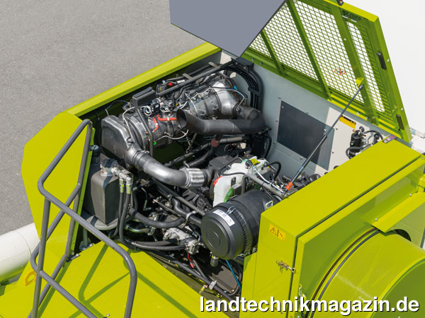 Zukünftig werden die Claas AVERO 160 und 240 von 6-Zylinder-Cummins-Motoren mit 6,7 l Hubraum angetrieben, die nicht nur die EU-Abgasnorm der Stufe V erfüllen, sondern auch mehr Leistung bieten als die Motoren der Vorgängergeneration. Interessanterweise verfügten die vormaligen Perkins-Motoren über mehr Hubraum (7,0 l) und benötigten neben SCR und DPF zusätzlich die Abgasnachbehandlung EGR, auf die bei den neuen AVERO verzichtet werden kann. Claas zufolge beläuft sich die Maximalleistung (ohne Angabe einer Norm) im erneuerten AVERO 160 auf 123/167 kW/PS und im AVERO 240 auf 157/213 kW/PS – etwa 9 respektive 8 PS mehr als bei den Vorgängern. Laut Claas benötigt die neue Abgasnachbehandlung weniger Bauraum, weshalb die Motorabdeckung niedriger montiert werden kann – sie befindet sich nun etwa auf Höhe des eingeklappten Korntankes. Bedingt durch die höhere Leistung wurde das Volumen des AdBlue-Tankes von 30 auf 49 l erhöht. Der Kraftstofftank beider Modelle fasst nun 400 l, was für den AVERO 160 eine Erhöhung der Serienausstattung um 80 l bedeutet (der 400-l-Tank war eine Wunschausstattung), hingegen für den AVERO 240 keine Änderung darstellt.