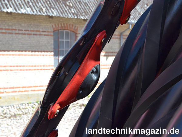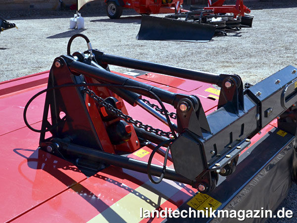 In der neuen Vicon Mähwerks-Baureihe EXTRA 700 arbeitet der bekannte Vicon Mähbalken mit den typischen, dreieckigen Mähscheiben, wobei im Falle des EXTRA 732T/R mit nach Herstellerangaben 3,18 m Arbeitsbreite acht und beim EXTRA 736T mit laut Vicon 3,60 m Arbeitsbreite zehn Scheiben montiert sind. Das neue EXTRA 732 liefert Vicon wahlweise mit SemiSwing Stahlfinger-Aufbereiter (Ausführung T) oder mit Gummiwalzen-Aufbereiter (Ausführung R), während das EXTRA 736 ausschließlich als T-Version angeboten wird. Dafür ist das 3,60-m-Modell wahlweise als EXTRA 736T FIX oder EXTRA 736T VARIO erhältlich. Die beiden Varianten unterscheiden sich in der Art, wie die Überlappung zu einem gegebenenfalls mit eingesetzten Frontmähwerk eingestellt wird. Beim FIX erfolgt dies, wie auch beim EXTRA 732T/R, über einen Klemmmechanismus mit einem stufenlosen Verstellweg von 150 mm. Beim VARIO gibt es hingegen eine komfortable hydraulische Seitenverschiebung, die ein Einstellen der Überlappung vom Schleppersitz aus und während der Fahrt über einen Verstellbereich von 400 mm gestattet. Identisch bei allen Vicon EXTRA 700 Heck-Scheibenmähwerken ist die neue Non-Stop-Anfahrsicherung mit gleichmäßigem Ausschwenken nach hinten oben über die gesamte Mähwerksbreite und automatischer Rückkehr in Arbeitsposition.