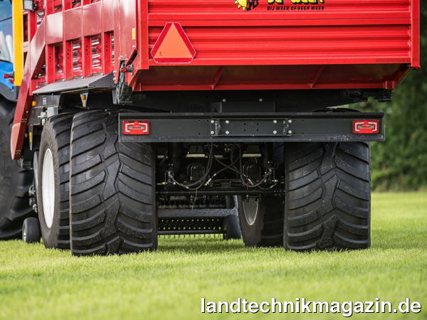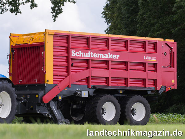Der neuen Rapide 6600-30,5 erweitert die Schuitemaker Kombiwagen-Baureihe um ein Modell das laut Schuitemaker aufgrund entsprechender Kundenanfragen entstanden ist. Die Zahl „30,5“ in der Typenbezeichnung deutet allerdings nicht auf das Ladevolumen hin – das gibt Schuitemaker mit 39 m³ nach DIN an –, sondern auf die Ausstattung dieses Modells mit 30,5-Zoll-Bereifung mit bis zu 162 cm Durchmesser. Insbesondere auf nassen Böden ergibt sich dadurch eine verbesserte Bodenschonung. Serienmäßig rüstet Schuitemaker den neuen Rapide 6600-30,5 unter anderem mit hydraulischer Federung, elektronischer Zwangslenkung, hydraulisch bedienter Stirnwandklappe und Vorbereitung für eine Reifendruckregelanlage aus. Wahlweise ist der Rapide 6600-30,5 mit oder ohne Dosierwalzen erhältlich.