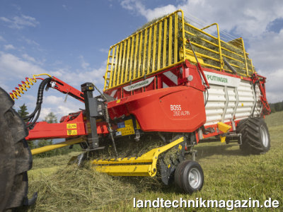 Die Hinterachslenkung realisiert Claas durch eine mechanische Verbindung zwischen Vorderwagen und der Achsschenkellenkung an der Hinterachse. Im Knickgelenk findet sich neben einer Dämpfung für mehr Komfort auch ein Hydraulikzylinder, der beim Lenken die Hinterachse bewegt. Um im unebenen Gelände den festen Stand zu sichern, ist ein Knickpendel eingebaut, das seitliche Bewegungen des Vorderwagens ausgleicht. Beim TORION SINUS 956 kann die Hinterachse zusätzlich um fünf Grad pendeln.