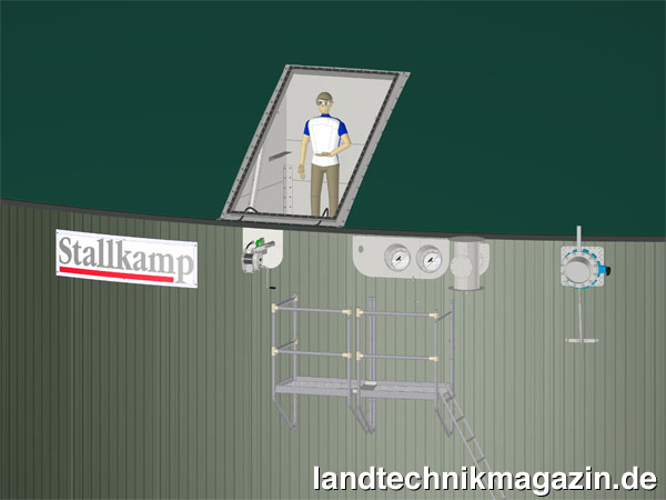 Die Neuheitenkommission erläutert, dass durch die gasdichte Serviceöffnung für Biogasfermenter der Erich Stallkamp ESTA GmbH lediglich der Füllstand angehoben werden müsse, um beispielsweise dass innenliegende Rührwerk auszutauschen. Die Serviceöffnung sei ein praxisreifer Durchbruch im Gegensatz zum üblichen Prozedere, das komplette Fermenterdach zu entfernen. Diese Neuheit schaffe wirtschaftlichen Mehrwert, leiste einen positiven Beitrag zum Klimaschutz und entlaste das Wartungspersonal.