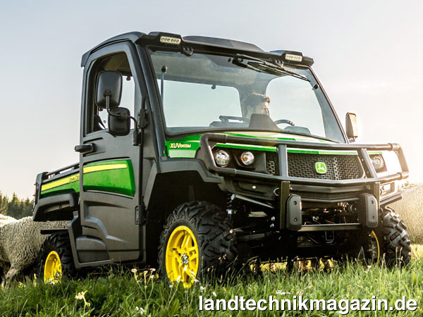 In der mittelschwere Klasse der John Gator wurden die HPX815E, XUV560E und XUV590M um weitere Details verbessert. So verfügt der neue HPX815E, der mit einem 3-Zylinder-Dieselmotor mit 854 cm³ eine Höchstgeschwindigkeit von 40 km/h erreicht, über eine neue Ladepritsche mit einer Ladekapazität von 454 kg. Die Heckklappe kann mit einer Hand betätigt werden. Die Ladepritsche ist laut John Deere aus einem sehr widerstandsfähigen Material gefertigt, das zuverlässig gegen Rost und Beulen schützt. Mit den LED Scheinwerfern sowie der neuen Frontstoßstange ist der Gator nach Unternehmensangaben auch für härteste Einsatzbedingungen gut gerüstet. Das digitale Armaturenbrett ist eine weitere Neuerung.