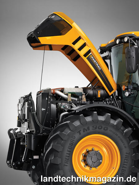 In der Fastrac 4000 Serie setzt JCB zukünftig auf AGCO POWER Motoren mit 6,6 l Hubraum. Die Nennleistung bei 2.100 U/min beziffert JCB beim Fastrac 4160 mit 118/160 kW/PS, beim 4190 mit 139/189 kW/PS und beim 4220 mit 160/217 kW/PS nach 97/68 EC. Die maximale Leistung bei 1.950 U/min gibt JCB nach 97/68 EC mit 129/175 kW/PS für den 4160, 153/208 kW/PS für den 4190 und 173/235 kW/PS für den 4220 an und das maximale Drehmoment bei 1.450 U/min für den 4160 mit 750 Nm, mit 850 Nm für den 4190 und 950 Nm für den 4220. JCB hat sich nach eigenen Angaben für den Herstellerwechsel entschlossen, da die neuen Motoren leiser sind und die Abgasnorm EU Stufe 4 mit SCR und AdBlue ohne DPF oder EGR erfüllen. Ein weiterer Grund für den Wechsel des Motorherstellers ist laut JCB die gute Zusammenarbeit mit AGCO. So hat das JCB-Service-Personal Zugang zu den AGCO-Motor- und -Getriebe-Tools, so dass Fehler im Bedarfsfall schneller behoben werden können. Das schlanke Design der Motoren und die seitlich unter der Kabine verstaute SCR-Technik ermöglichen wiederum ein schlankes Design der Motorhaube. Der Dieseltank bietet ein Volumen von 400 l, der AdBlue Tank 45 l.