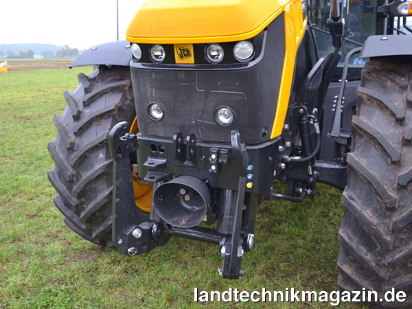 Die Hubkraft des Frontkrafthebers beziffert JCB für alle Modelle der neuen Fastrac 4000 Serie mit 3.500 daN. Der Frontkraftheber ist ebenso wie die 1000er-Frontzapfwelle Wunschausstattung.