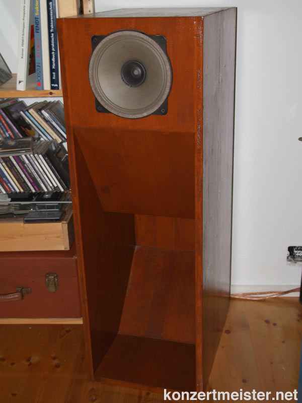 Gewissermaßen die Initialzündung zum heutigen Konzertmeister-Audio-Projekt kam dann 2008. Zum Zeitvertreib und weil im Keller jede Menge alter Holzplatten sowie zwei betagte RFT 20-cm-Breitband-Chassis (mit Bakelit-Körben!) rumlagen, besorgte ich mir im Internet den Bauplan eines Horngehäuses und zimmerte zwei mächtige Boxen. Von einem ausgewogenen Frequenzgang konnte natürlich keine Rede sein. Doch was ich mit diesen Lautsprechern an Räumlichkeit und Natürlichkeit erlebte, war für mich ausschlaggebend, zukünftig nur noch mit Breitband-Systemen Musik hören zu wollen.